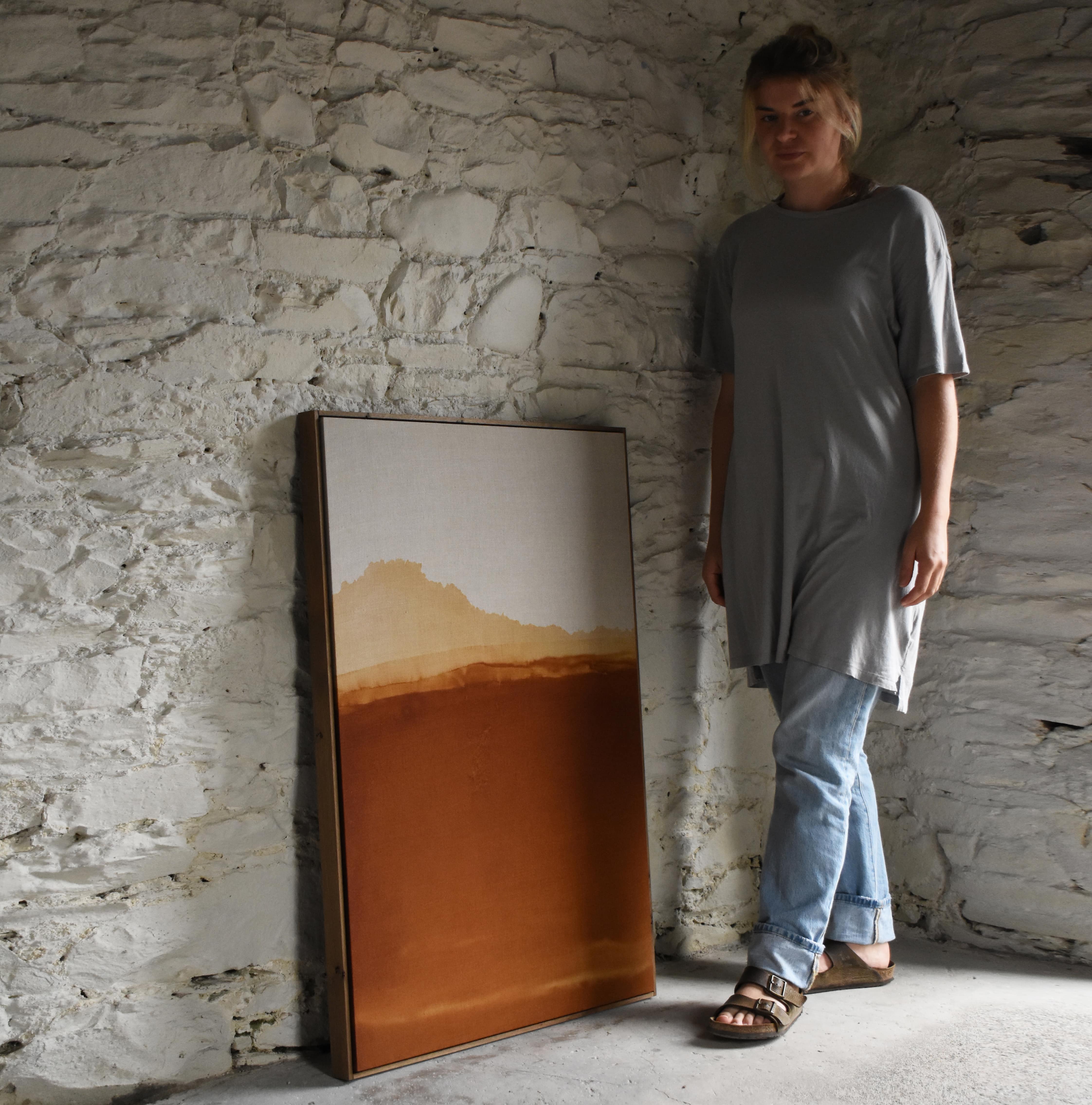 Hayley McCrirrick is a Scottish artist working with textiles. She established her studio in 2018 and since then has shown work in London, Edinburgh and Paris, also completing various commercial and private commissions in the U.K and USA. Using traditional craft techniques to inform and inspire her work on cloth and paper, Hayley creates the feeling of landscapes and elements, reducing and amplifying them to their essential expressions. She works from memory in combination with photography, following trips to different landscapes around Scotland. As such, her textile artworks can be literal and abstract simultaneously; she seeks to create work which feels grounded to landscape and irrelevant to time.