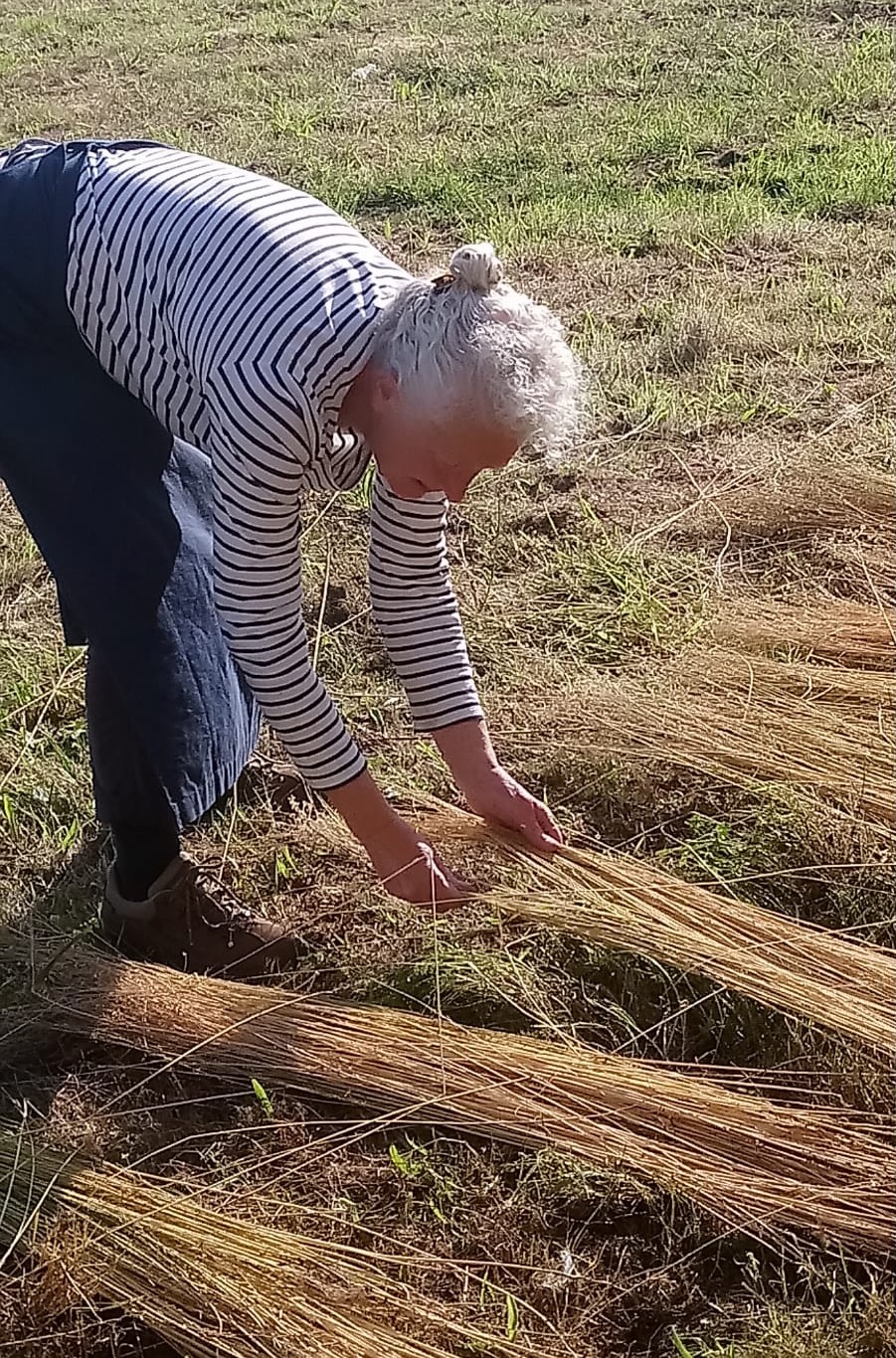 A daily diary might include gathering stones, seedheads, wood and bark while out walking in my local area, the beach or the woods. These finds often find their way into my handwoven sculptures. Springtime is the time to plant flax seed and its pulled in late summer or Autumn, left to dry then ret and dry again before extracting the flax fibres by ‘heckling ‘and ‘scutching making it ready for spinning then weaving. The willows are cut in the wintertime and the rods left to dry before using time rods in my weaves. Sometimes the bark is removed from fresh rods in late Spring , rolled then dried, ready for soaking when I need to use it in a woven vessel or a handwoven screen.