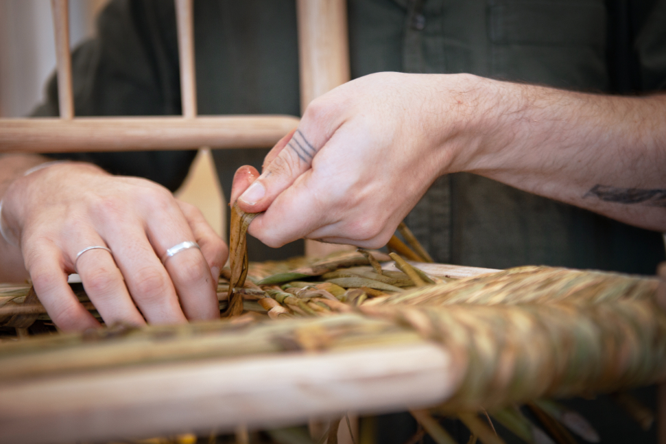 The Marchmont Workshop is one of the most heart-warming and optimistic stories of craft ingenuity and endeavour today, demonstrating the power of craft to hold hands with past, present and future. Sam Cooper and Richard Platt founded The Marchmont Workshop in 2020 on the Marchmont Estate, after completing an apprenticeship with Lawrence Neal, one of the last remaining practitioners of the traditional rush chairs in the UK, before his retirement. Sam and Richard do more than keep the tradition alive, passed mind to hand down six generations, they bring their own design backgrounds to the techniques they have mastered, introducing contemporary furniture into the future lexicon of heritage craft too. Designed, in their own words ‘from tree to home’, each piece of furniture is hand crafted from local hardwoods sourced from woodlands around The Marchmont Workshop in the Scottish Borders. Every chair has a light but long-lasting seat woven from hand-picked common river rushes.