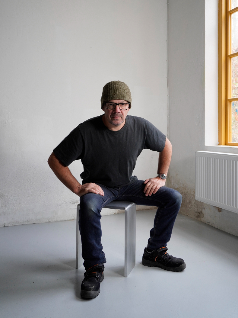 A magnificent centrepiece as fit for a factory floor as a baronial banquet. David’s process of heating and bending square-profile aluminium tubes results here in a work of industrial baroque beauty. Compelling, commanding and covetable.